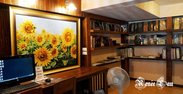 酒店前台比较小巧,有很多原始部落感的雕像,还有一些小手工。正如酒店名字所示,这里是一个gallery!墙上挂满了大概是当地艺术家的作品(泰国艺术的影响力近几年在亚洲是节节攀升!),部分是油画,部分是acrylic。一楼到二楼之间的夹层,算是个小休闲书吧吧。房间的装修以实用性为主,比较简单