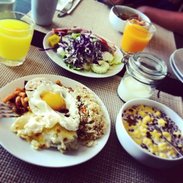我们住在卡马拉海滩,其实这家酒店是刚开的,我在旅行族上看到1240RMB3晚的团购才买的,没看地图,来了才知道是前不着村后不着店的山里,黑车师傅收了我们500B,反正比机场写的公约价到卡马拉海滩700B要便宜,应该没被宰吧。 早晨7点多,服务员只有1,2个人,酒店比我想象中新,整个大堂木有人,海风的声音吹得我耳朵疼,可能刚下过雨,空气中弥漫着海腥味。 酒店的外围环境比我想象中清静,这个价格自认为性价比还不错。酒店的早餐跟预料中一样种类少,但是超乎想象的重口味!这个早餐吃三天,我会腻的......
