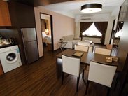 酒店性价比很高 优点:1. 距离机场很近 开车10分钟就能到达 适合我们这种红眼航班到达的游客 2. 从酒店前往著名的丹绒亚路海滩非常近步行15分钟便可到达。3有大型套房 适合多人入住 缺点:也是离开机场太近 去市区景点不太方便 例如水上清真寺之类的 不过酒店有车可以接送市区 价格蛮实惠的 订这家不在市区的酒店 除了距离丹绒亚路海滩比较近以外 就是看中了它的设施和装修比较干净现代 我们订了6人家庭间 有一个客厅 加三间卧室(两间大床房 一间标准房) 每间卧室有独立的卫生间 主卧还有大浴缸 客厅里还有电磁炉 锅具 洗衣机等设施 相当齐全