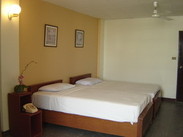 冷气套房。住在310号房。老旧的旅馆民宿。和照片差别是,没吊扇,有冷气,但是无法调整强弱风。然后是一张大床。房间优点就是够大,可以摆两套桌椅。但是设备很古早味,特别是那台大冰箱,老旧得可以回收。房间有异味,浴室也是。窗户的一角,可以稍微看到河流。一楼大厅有免费的无线网络,房间收不到讯号。附近都是民宅,没有24时便利店只有小杂货店和零星路边摊。位置不好找,绕了好几个弯巷,幸好路上有箭头标示。靠近渡轮n4站,离中国城步行约十分钟。