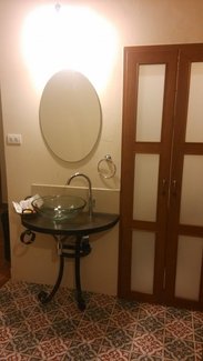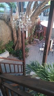 干干静静的小院子里静悄悄的,宾馆是一座独栋二层小楼。坐等了会儿,有个服务员从楼里出来,看到我们才找来了接待员。接待很热情,笑嘻嘻的道歉,并且说明了接待时间。虽然我们订的房是当天下午2点后才能入住,但她一点抱怨也没有。还带我们进楼里一层公共淋浴区洗漱,等我们收拾好,还帮我们存了包。 Sirikamsan Bed & Breakfast在清迈古城里,在suanprung门和清迈门之间, 这家宾馆的知名度不太大,貌似有些难找,但后来几天,熟悉位置后,觉得这个住宿点选得简直太好了。只要沿着古城墙南外围,从这个巷口进去,第一个路口左手边就是了。