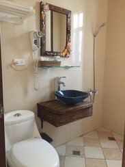 民宿以地中海风格为主,楼主觉得民宿老板在装修方面还是挺下功夫的,喜欢自拍的孩纸这里是不错的选择。民宿在恒春镇上,在“巷子厨房”和“董娘的店”附近,当然就没有垦丁大街热闹,但是楼主觉得睡觉还是要宁静点好。房间有阳台,有冰箱,房间空间也比较宽阔。民宿老板是位非常专业的向导,入住的时候老板会拿出地图给你好好讲讲玩的,吃的,认真听就对了。老板nice,热情,有问必答,有困难会主动帮助.....下次去,还是会选择他家。
