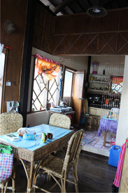 走入旅馆,朋友正跟老板在交谈着,看到我们笑着说,真难找,终于知道为什么在春节这样的旺季不用付订金订房了。谁说不是呢,这样难找的路,谁来啊!!! 其实这里应该说是民宿才对,把住房空出两间房来租给外来的人入住,不过房费可不便宜,咱们订的是这里最好的一间双人房,虽有独立卫生间,但却没有热水,这样也要2千P一晚,但胜在这里环境真的很好。房间面朝大海,0污染,大树下鸟语花香。晚上可观星辰,听着海浪声入睡。 老板是法国人,曾在北京呆过几年,到菲国旅游在爱妮岛认识了漂亮的姑娘,也就是现在的老板娘,从此就留下,在海岸边这块小地上建了房,经营着这家民宿,多么似曾相识的故事啊,为啥浪人都走这样的爱情路线? 酒店前台的小黑板上写着我今天要入住的信息,多友好啊有种一诺千金,被重视的感觉。老板看到我在booking上订房的留言说有三人入住,特意在房里多铺了一张小床,真贴心赞。小房清新脱俗,粉绝的沙帐,我们说着打趣这是H跟小阳的新房。这里还提供租皮艇和单车的出租,特别想骑着单车环岛,但一想到要抬着单车在这沙石路上步行半小时才能走出镇中心就完全放弃了。咱们三女多庆幸最后改订了LOLO Oyong,这里风景再好,抬着行李箱走进来,可真不是开玩笑的。
