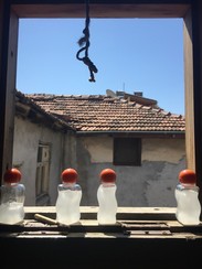 在格雷梅镇住的是Travellers' Cave Hotel,65欧每晚。注意是Hotel, 不是Pension。Travellers' Cave Pension就是另外一家背包客的旅馆了。我们住的旅馆在格雷梅镇边上的小山坡上,我们的房间几乎在最上面,可以俯看整个小镇和周边的风景。每天早上6点半到7点会有50多个热气球从我们头顶近距离飞过,非常壮观。房间是石头彻的,很有洞穴的感觉。山区温差大,晚上有暖气,不怕冷。从酒店到小镇有捷径可走,很近。带着行李的话,打个电话酒店会免费来接。另外,酒店推荐的一日游和气球游都很好,钱统一在结帐的时候付给酒店,十分方便。一日游是Hiro Travel Agent的,热气球是Butterfly公司的。大概因为我们住了四晚,结帐时店主还送了一瓶当地产的卡巴多西亚的红酒,后来我们知道这酒在土耳其还挺有名的。