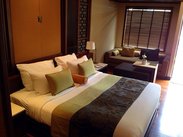 酒店分Main wing和Busakorn wing两种。距离Jungeceylon购物中心10分钟,从Main wing大厅出门对面就是Patong Beach,Soi Bangla Nightlife也近在咫尺。这家holiday inn resort占地面积相当之大,相信是在Patong Beach上屈指可数的。酒店整个布局充满热带风情,服务设施相当齐全。浴室、化妆台、洗漱间、洗手间都是分开的。打开泰式木门才进入卧房,卧房直通阳台。阳台上也有独立的躺椅和桌子,怕晒的朋友可以在自家阳台享受美景。站在阳台上可以看到独立的游泳池和其他客人在泳池嬉戏的温馨场景。 冰箱里有许多饮料可以选择,而且都是免费的。晚上还会赠送welcome水果和小点心。饮料和水果每一天酒店也都会为客人补全。房间里会有不少兰花作为装饰,每天服务员打扫房间后,都会在床头重新放一朵新鲜的兰花。房间配有Bose sound system和preloaded Ipod,插上iphone就能随时享受优质的音乐。离店当天,酒店还会温馨地在床头送上一个小象纪念品。这种感觉就像和爱人在自己的家中被人照料着。Holiday Inn的早餐是出了名的品种丰富又美味。特别的是这家resort还能制作不同的咖啡。
