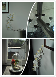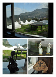到门口,就受到民宿主人郭姓老板和林姓老板娘的热情欢迎,给我们推荐九份的行程建议。老板退休前是基隆的大学老师,外加自己搞过艺术,退休后千寻万觅找到了此处,自行设计装修,整个房子以及各个房间无处不显示夫妇俩对生活细节的关注和生活品质的追求。共区域,一个大大的客厅,再加上精心的设计和装饰,还有错层的书架,一切都令人心动不已。木质的地板和天花,配合窗外的山景、海景,又让人觉得如此亲近自然。