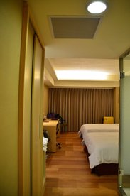 帝豪饭店的客房较狭窄,这与国内三星级的标准间差不多。