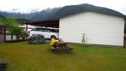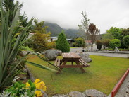 入住Lake Matheson Motels。这也是一家LP推荐的酒店,个人评价4星—,房间干净整洁,有简单的厨房用具,火力不太足,不过煮点快餐面足够了,淋浴间稍嫌简单,不过也还是干干净净。可能刚从大别墅住到这里心里有点落差吧,其实在这么个小镇也算很不错了。其实房间外的景致也蛮不错的,我们就在这芳草萋萋的草坪上用餐,感觉蛮爽的…她家的网址:www.lakematheson.co.nz