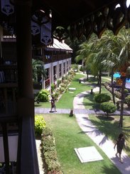 LAGUNA的服务还不错,登嘉楼机场下来直接上大巴,送到JETTY,买5RM的海洋公园门票上船出发就到了···回来如果你是晚上的飞机,他还能把你拖到登嘉楼唐人街让你逛2-3个小时··哦,也要买5RM的附加票··嘿嘿。当然了,laguna属于性价比选项,风景凑合,就是人多··· 住:酒店主要分为3种类型的房间:1)池景/山景房:说白了就是房间不怎么看得到海的房间,相对比较好的是围绕游泳池一圈的池景房,山景就比较差了····2)海景房:就是面朝大海的房间,坐在阳台上可以看得到主海滩的···3)高档海景房:就是正面对海,并且阳台比普通海景房大一倍那种····· 由于laguna这里是一天的客人一起接上岛的···所以建议大家不要怕麻烦,尽早排队CHECK IN,我就是因为懒,拿得最后一个房间,结果拿了最烂的一个海景房,5555555另外么,laguna的房间挺好玩,除了一个大床,居然还有2个小床贴墙····我和媳妇说,难道是知道我打呼,给的备用床?哈哈····· 吃:吃是laguna这里最美特色的事情了,每顿饭都是在LOBBY 2楼吃自助餐·····当然是免费的(含在3D2N套餐中的)东西么,凑合凑合,有一个油炸档,一个烧烤档每次东西还不错,其他东西都是大路货····水果一般就是西瓜,木瓜和菠萝···么的特色····饕客就表指望了LAGUNA的吃了···并且很令人发指的是,你就是想掏钱吃,也吃不到···因为没有卖的····嘿嘿·· 玩:娱乐项目对3D2N还是比较丰富的····每天上午下午各有一次免费的出海浮潜,分OPEN SEA, MARINE PARK 两块地方····另外感觉比较有意思的是射箭,丛林hiking,还要交是所有海岛都有的深潜··晚上酒店会组织类似歌舞晚会的东西,就是唱唱跳跳···一般能持续到10-11点······