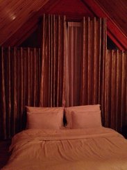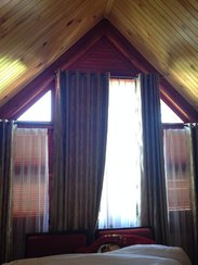 dreaming hill是在一个半山腰的公园里,白天才发现有很多花花草草和松树林。酒店还有供两人住宿的小木屋,价格也很便宜,人民币一百多。我们住的别墅,楼上楼下分别有两个卧室,阁楼上的浴缸,客厅啊厨房啊餐厅啊应有尽有,就是没空调啊亲!