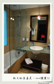 这个酒店的确不错,和国内四星有得一拼了,650人民币一晚真的很值!大堂的WIFI信号超级好,网速很快很快。还有个图书馆,二楼还有健身房,属于设施很全的一个酒店了。房间很大,很是惊喜。唯一缺点是电视机太小。卫生间的格调和国内的一些度假酒店类似。进门正对梳洗台,左边是浴缸,右边是马桶。