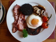 Hillcroft B&B 作为家庭客栈,没有具体地址。要预订 HILLCROFT B&B,只能通过邮件直接联系。这家 B&B 很诚信,也要求客人讲究诚信。通过邮件预订,不需要预付押金。(强烈建议日后有网络预订者,一旦考虑放弃预订,千万尽可能早地通知对方) 酒店信息:HILLCROFT B&BA850,Treaslane(57.4913,-6.3564), IV51 9NX, +01470 582304 or 07789 113541,85镑/间,苏格兰早餐。 这是一家很不错的家庭B&B。有3间房间用于B&B,可住7人。这里只收现金。之前预订时被告知没有wifi,结果wifi信号很强。从房间布置看,女主人很有品位。女主人对待客人是很用心的。客房内的柜子抽屉里,有牙膏、牙剪刀和针线什么的。电源接线插座是多功能的,客人不需要带转换器。 转天早上7点45,开始享用女主人准备的苏格兰早餐。水果、面包和咖啡是前奏。房东太太端上了含有荷包蛋、培根、苏格兰布丁、烤土豆和小番茄。