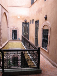 Marrakech的Riad Hiba也是在booking上订的,双人间35欧一晚,三人间45欧一晚。如果现场去,应该能砍价的。这家旅馆的条件,不如Meknes同名的那家Riad,不过地段还是不错的,出门走100米就到Jemaa el Fna大广场。同时,距离这家Riad大概三四百米 、在Medina城边就有一个比较正规的收费停车场,隔夜停车收费40迪拉姆。
