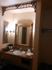 5点前赶到大牛排馆,以为能看到挑战72盎司牛排的场面,结果没有,挑战台上空空如也。店铺西部风格,服务员牛仔装扮,食客很多,没有小店的亲切感。点了最小份的牛排,怕生要了全熟觉得是个错误,味道不错但没了肉汁的鲜美。旁边就是大牛排开的旅馆,来杯啤酒,吃完直接入住。今天奢侈了,牛排晚餐27块,旅馆80。挣人民币花美金,伤啊! 房间西部风格,大床又可以转圈睡了。椅子靠背上刻着一颗星,德州绰号孤星之州。唯一缺憾是和隔壁房间屋里有道门隔着,难道原来是套房吗?虽然锁着,但是觉得怪怪的。隔壁一直在看电视,听的真真切切。