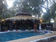 在PG的10天,我只在Big Apple潜水了,没有换过其他潜店,一是因为懒,二是因为相处久了有感情。自从在网上查攻略时发现Big Apple的潜水价格和住宿价格都便宜得诱人,我就一门心思去Big Apple。先后发了许多邮件,只收到1封回复,说潜水课程可以随到随学,住宿没有最便宜的500p了,目前只有1100p的可以住,有电风扇、双人床和热水卫浴。我之后又发邮件咨询、确定课程之类,都木有人回复了。后来到店里问,说是木有收到其他的邮件。 大苹果的潜店环境也不错,因为跟住宿是在一起的,共享一个大大的游泳池。我经常坐在泳池浅水层的台阶上穿潜水的3毫米长袖湿衣,也经常在潜水后坐在同样的地方脱下被海水泡了很久的湿衣。顺便在泳池中抱着充满气的足球漂一会。虽然泳池中经常有我这样的潜水者捣乱,不要以为水里很脏哦,几乎每天或者隔天都会清理水中的杂物,泳池也是随时过滤的。 Big Apple餐厅:在Big Apple学潜水,最近的饭店就是Big Apple的,在这里吃过1次披萨、1次烤牛肉配米饭、2次三明治。整体评价,贵,慢,味道还可以。如果赶时间,不要来这里吃!如果性子急,不要来这里吃!如果预算少,不要来这里吃!