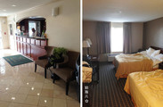 贵!普通2星标准,环境一般,简单的美食早餐,选择很少。这个无敌贵的酒店长这样!没办法,谁让我们定的时间太晚了。Quality Inn酒店在机场附近,从机场出来开车十分钟就到了,这点还比较方便。