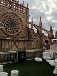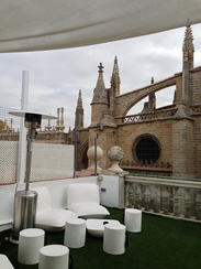 翻译为教堂门酒店,故名思议,就在塞维利亚大教堂对面,古城内。房间也挺新挺干净的,窗外就是教堂。露台风景也非常好。