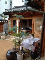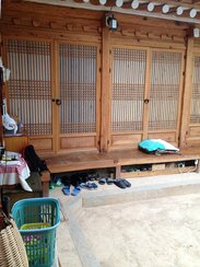 这间韩屋比我们想象中要简陋点,但还算干净,缺点是房间没有锁,感觉不太安全,但还好我们没丢东西,之前在booking上看过有人的评论说韩屋很多都不带锁,有住客反映东西被偷 (但不是发生在我们住的这家) 房间布置还挺精致的,其实只是庭院相对简陋点(因为这是我们住得最贵的一晚,要500+人民币一晚,这样的价格我们难免会把整个环境都想象得高大上一点)毕竟想象和现实是有差距的。。。 房东把后门钥匙留给我们后就离开了,她见我们表情有点担心,还安慰我们说没事的,很安全,看来韩国治安真的不错,他们都不会像我们对财物这么敏感。(这里说明一下,韩国进屋里都要脱鞋的,不论是韩屋还是GH,之前导游说中国人没有这一习惯,她曾经带的团去北村有两个中国不脱鞋就进去了,多番提醒后他们还是如此。。。所以出门在外真的要注意尊重对方的文化。