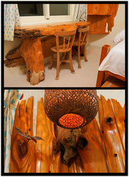 九份——山海湾民宿(约450元一天) 优点:窗外景色很好,距离金瓜石较近,房间大,房内都是民宿老板用桧木做的各种家具,有免费早餐。 缺点:接送九份收费(一次85台币),只有冷气,位置比较偏僻,只能靠老板接送。