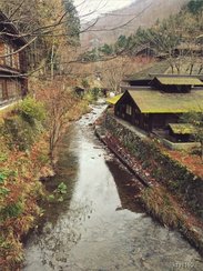 有百年历史的法师温泉,交错的回廊让我仿佛置身于千与千寻的世界,曲折迂回,让人摸不着头脑。和昨天一样也是和式的卧室,但今天的更豪华了些。走出房间才看清这家温泉旅馆原来是依势而建,驾在了溪流的两岸。绝佳的地理位置和绝妙的景色造就了这家百年旅店。