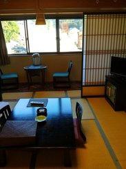早,按预约时间,到楼下享用了丰盛的早餐。除了图中左下角的纳豆吃不惯,其余都非常好吃,锅里煮的是味增汤。右下角小碗里是温泉蛋。服务员老奶奶知道我们是来自中国的游客,还特地给我们预留了靠窗的座位,再次被感动