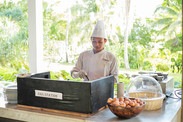 算不上气派的大门,进入之后却有种豁然开朗的感觉,酒店本身还是非常高大上的!大厅是个非常有特色的亭子,里面的躺椅让我一见钟情,躺在上面缓解下长途跋涉的疲劳真是太舒服了。接待会告诉你酒店的基本构造,餐厅,泳池,高级SPA这些公共设施的具体方位以及开放时间,还会告诉你房间里哪些东西是免费供应的,总之非常贴心。办理check in的时候,还有人给我们递上了一杯果汁和清凉薄荷味的冰毛巾。瞬间觉得棒棒哒。原本只是奔着无边泳池定的这家酒店,定的并不是海景房,但是看到的第一眼还是非常的惊喜,一应俱全的设施和完美的大阳台。两米八的超大床。。。让我不管怎么睡都感觉是浪费了这么大的床一样。一个比如家快捷整个房间都要大的洗手间。。。真是够了!