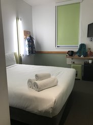 优点: 1. 离机场近的酒店里价格最便宜的。 2. 房间虽小,但设施足够。 3. Yellow bus机场班车每20分钟有一班停靠门口,票价5NZD,在大厅的自助售票机买票即可,非常方便。 4. 旁边就有个Countdown大超市。 缺点: 1. 地图上看着近,但一路基本都是汽车道,走着觉得挺危险的。而且走过去并不近! 2. Wifi收费的,密码得跟前台“买”。