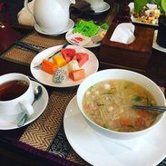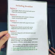 优点:位置不错,和PUB STREET只有一河之隔,溜达过去也就5分钟,晚上吃喝玩乐非常方便。而且它所在的这条胡同里也很多吃喝小店,价格比PUB STREET实惠一些。隔壁有诊所和配套的药店,东边有一条南北向的街道热闹非凡,各种档次的餐厅咖啡厅路边摊和酒店很多,还有小超市和一个小的免税店,选择在这条街上压马路也不错,就是车流比较多,逛的时候要注意安全。 酒店员工非常友好热情,请他们帮忙切个水果居然有认真的摆盘。这家的早饭是给你一个单子,有不同的OPTION,基本就是面包鸡蛋之类的西式餐点,其中比较特别的是当地叫BOBO的菜粥,应该是用培根煸出的油炒一下蔬菜再和粥一起煮口感咸甜,加了很多姜丝,早上吃完很舒服。除了菜单的OPTION外还会免费提供茶/咖啡和一小份水果。 缺点:酒店实际比BOOKING上的照片朴素很多,色调没有那么艳丽,第一眼看到有点小失望,另外没有电梯只能自己爬楼。