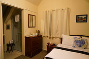 预定的时候就被照片中漂亮的客房和公共区域吸引,果真完全一模一样。经营民宿的是一个白发外国老爷爷和他年纪较轻的亚裔夫人。他们的儿子也住在这里。坐落在半山腰的民宿用google导航非常准确,开上来完全没有难度。因为高所以风光美。 民宿在三楼有两个房间,二楼是客厅、厨房和check in的办公室,再往下走还有一层,有游戏室、洗衣间和几间客房。这一层的客房开门是草坪,还有舒适的躺椅。所有房间的装饰都很用心,基本都是实木家具。这里让我想起了在意大利佛罗伦萨入住的民宿。早餐所在的位置通过大窗户看到瓦卡蒂普湖,非常美。早餐简单但品种丰富,有水果、炒蛋、面包、酸奶、肉肠、培根和番茄炖豆,英国style浓郁。我们的客房在三楼,房间内有浴室和卫生间,但因为是顶层,所以屋里天花有些斜角,不注意会磕到头。客人可以用公共厨房烹饪,但主人不希望客人做一些味道比较重的,比如加辣椒爆炒的中餐,因为也是担心隔壁的客厅地毯和窗帘吸收味道除不干净。
