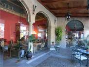 就在古城外一点,停车什么的都很方便,从窗口看出去就是古城皇宫,酒店很漂亮有很古典。 进大门后的庭院,可以用餐喝咖啡。漂亮的房间,很大很舒适。