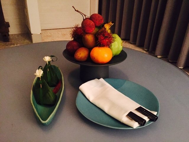 大堂很安静,浓浓的泰国风扑面而来。前台的英文很标准,没有当地口音的干扰。很顺利办理完入住手续,迫不及待地奔赴房间。大床很舒适,没有海景房的潮湿,空调也很安静,大镜子帅帅的。雅致的墨蓝色沙发,适合蹦跳。这排黑色小家伙怎么能逃过我的手掌!餐厅是意大利风格,黑白相间的地砖,蓝色桌布显得尤为清澈。
